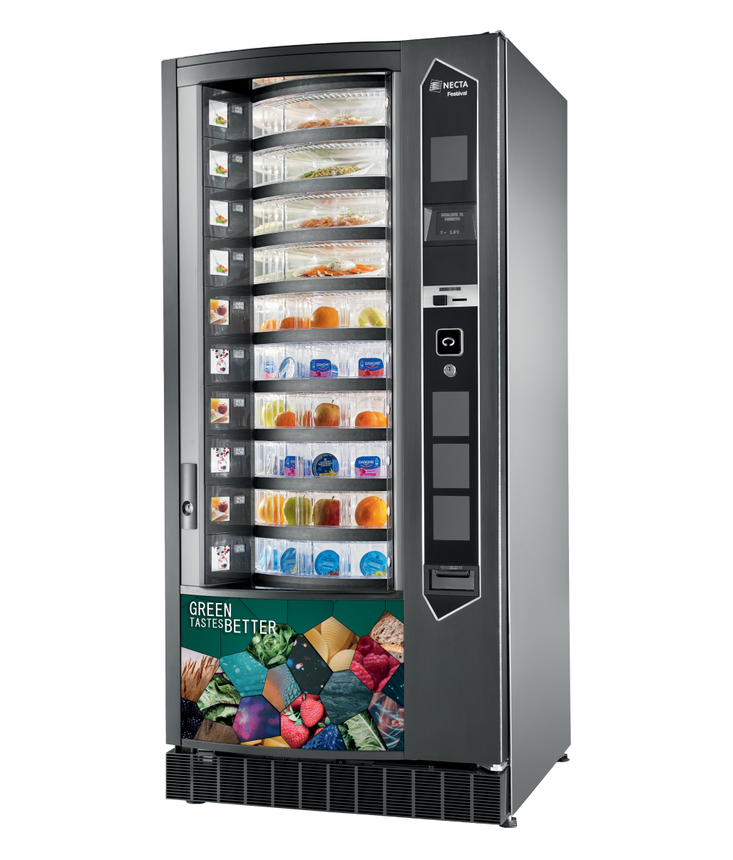 L'extrême souplesse de sa configuration permet à l'utilisateur de choisir parmi des snacks, des boissons, des plats frais, des fruits et des yaourts.